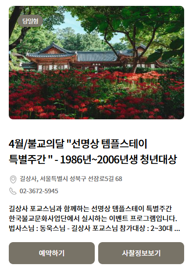 사찰별 프로그램이 궁금하시다면, 바로 확인해보세요!