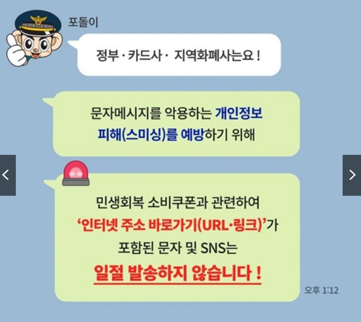 ⚠️ 정부에서 보내는 공식 문자에는 절대 인터넷 주소(URL)를 포함하지 않습니다.