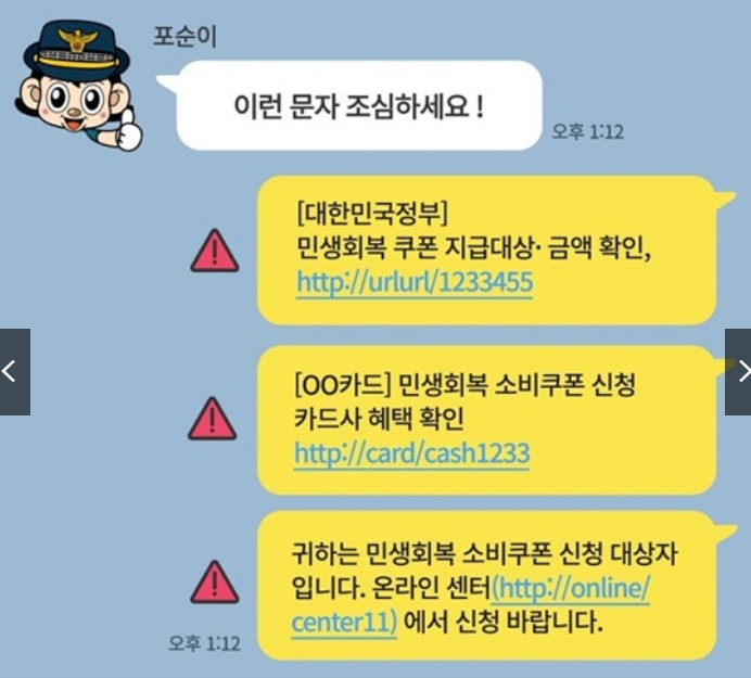 2025년 민생회복 소비쿠폰 신청이 시작되면서 신청 안내를 사칭한 스미싱 문자 피해가 늘고 있습니다.