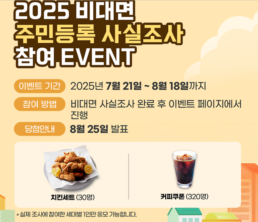 비대면으로 참여하지 않은 세대에는 읍면동 공무원이 직접 방문하게 되니, 빠르게 참여하는 것이 좋습니다.