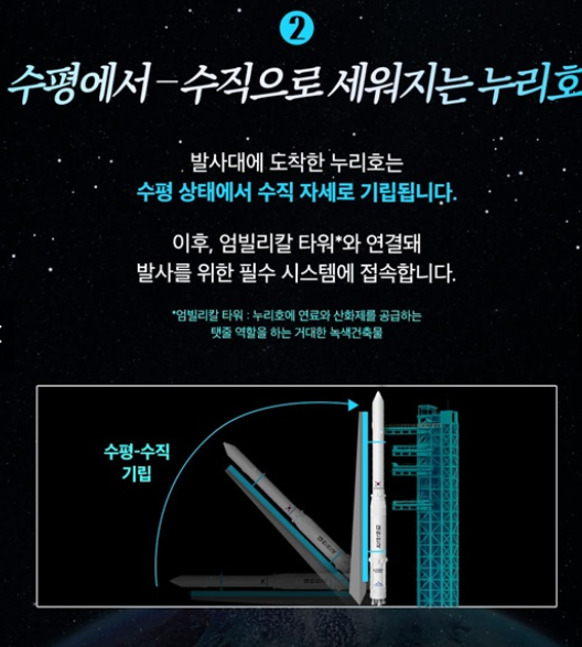 수직 상태가 완성되면 누리호는 엄빌리칼 타워와 연결됩니다.